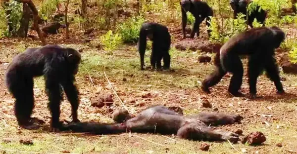 6隻黑猩猩聚餐吃掉1隻大猩猩幼崽,偶爾還會抓猴子吃,黑猩猩表示:猴腦最有營養!