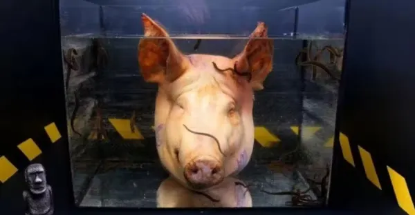 把100條水蛭餓上10天,再丟進一個完整的豬頭,場面一片混亂