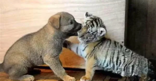 男子將小老虎收養回家,總是被家中狗狗欺負,當老虎長大後請不要笑