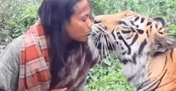 一外國女子放生老虎,5年後人虎偶然相遇,老虎直接撲過去咬住頭_叢林_傷害_人們