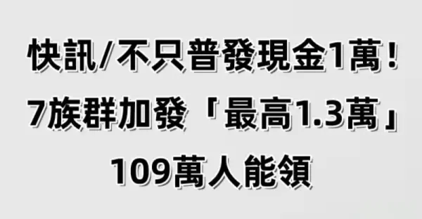 快訊/不只普發現金1萬!7族群加發「最高1.3萬」 109萬人能領