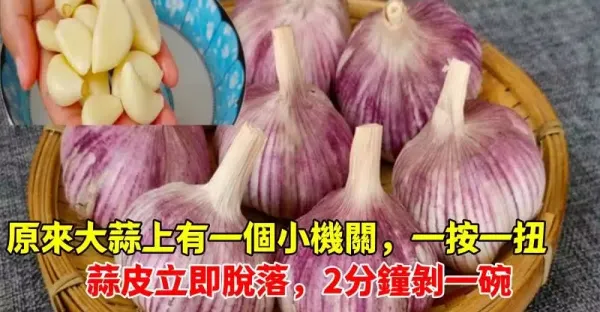 原來大蒜上有一個小機關,一按一扭,蒜皮立即脫落,2分鐘剝一碗
