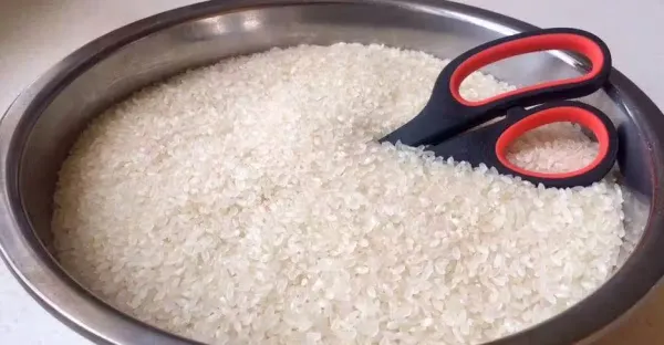 抓緊把剪刀插進大米里,真是厲害了,插一次能節省不少錢,快學學
