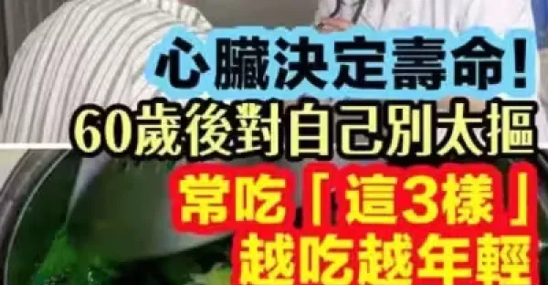 心臟決定壽命!!60歲以後對自己別太摳, 常吃「3樣食物」越吃越年輕!!