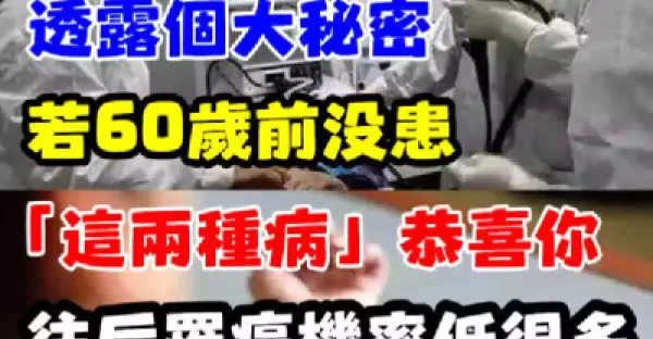 醫生透露個大秘密!若60歲前沒患「這兩種病」恭喜你:往後罹癌機率低很多!