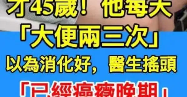 才45歲!他每天「大便兩三次」以為消化好,醫生搖頭「已經癌症晚期」,4個異常沒注意!