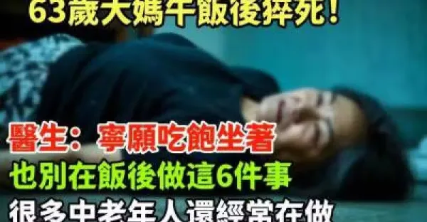 63歲大媽午飯後猝死!醫生:寧願吃飽坐著,也別在飯後做這6件事