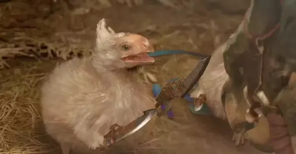 《魔物獵人荒野》有網友做了幼年版鷺鷹龍的持刀Mod,溫馴的模樣瞬間因為拿了兩把刀而產生了變化