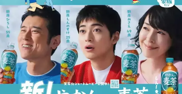 日本麥茶品牌「爽健美茶」推出真人版「蠟筆小新」廣告,描述野原家20年之後大家的模樣