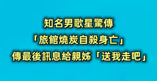 知名男歌星驚傳「旅館燒炭自殺」身亡,虛弱傳最後訊息給親姊「送我走吧!」