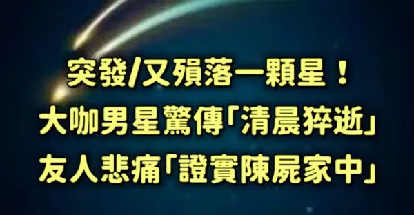 突發/又殞落一顆星!大咖男星驚傳「清晨猝逝」 友人悲痛「證實陳屍家中...」
