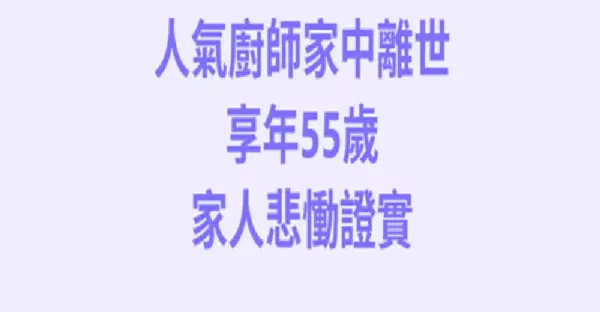 快訊/人氣廚師「家中離世」享年55歲