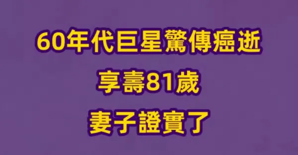 快訊/60年代巨星驚傳癌逝,享壽81歲 妻子證實了