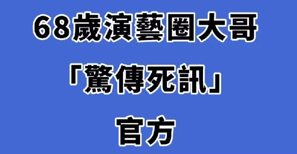 悲報!68歲演藝圈大哥「驚傳死訊」...官方「痛發文證實」