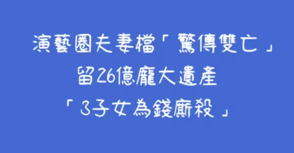 演藝圈夫妻檔「驚傳雙亡」留26億龐大遺產「3子女為錢廝殺」