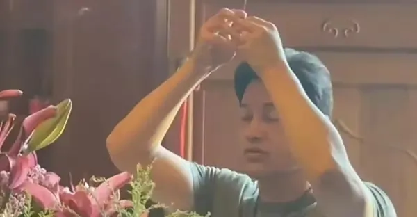 70歲呂良偉去普陀山,穿居士服祈福,楊小娟狀態差,看起來好顯老