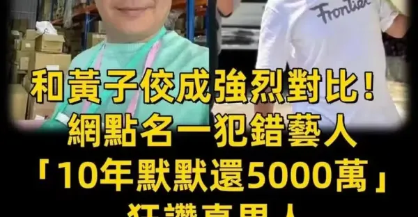 和黃子佼成強烈對比!網點名一犯錯藝人「10年默默還5000萬」 狂贊真男人「沒纏著演藝圈也有飯吃」