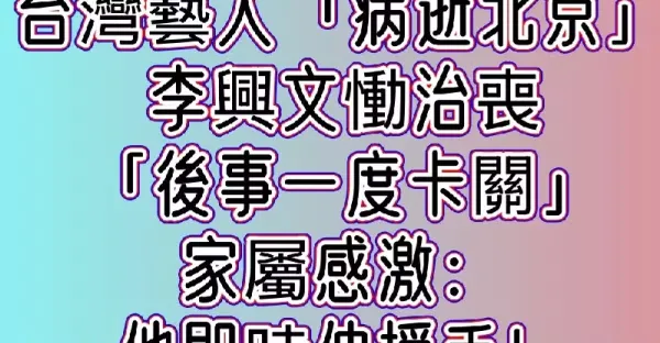 台灣藝人「病逝北京」李興文慟治喪 「後事一度卡關」家屬感激: 他即時伸援手