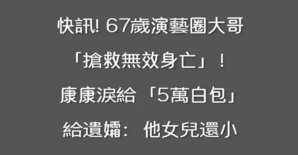 快訊 / 67歲演藝圈大哥「搶救無效身亡」!!! 康康「淚給5萬白包給遺孀」: 他女兒還小