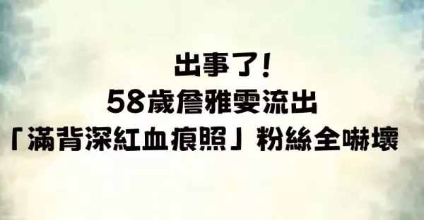 出事了 58歲詹雅雯流出「滿背深紅血痕照」粉絲全嚇壞