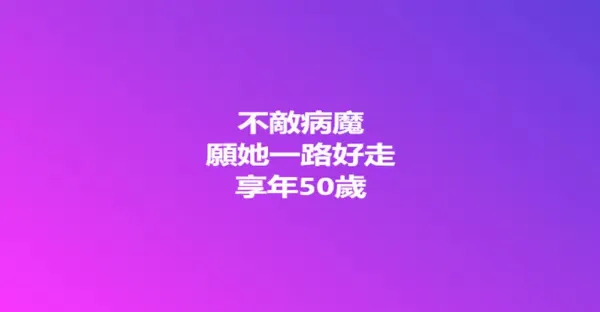 快訊 / 不敵病魔享年50歲! 願她一路好走