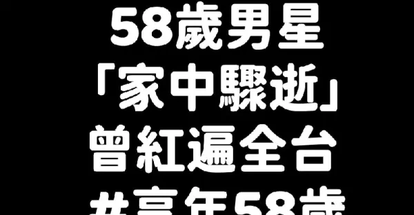 震驚演藝圈!58歲男星「家中驟逝」曾紅遍全台 #享年58歲