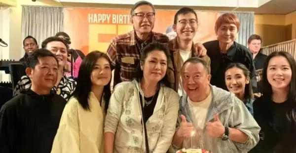 75歲陳百祥在香港,為老婆慶祝生日,大方秀恩愛,親吻黃杏秀臉頰
