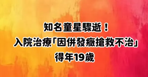 知名童星驟逝!入院治療「因併發症搶救不治」得年18歲 媽媽「悲慟證實噩耗」心碎喊話:以女兒為傲