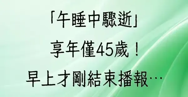主播驚傳「午睡中驟逝」 享年僅45歲!早上才剛結束播報…死因曝光