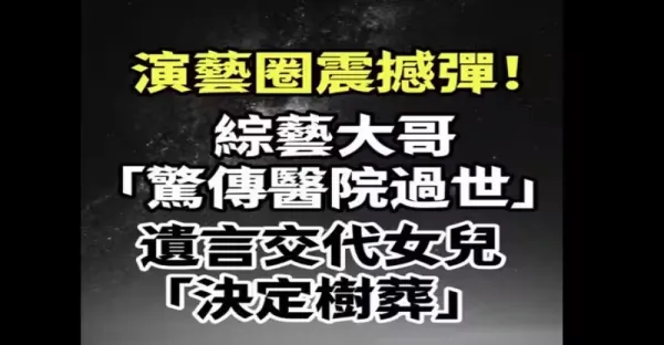 演藝圈震撼彈!綜藝大哥「驚傳醫院過世」...遺言交代女兒「決定樹葬」