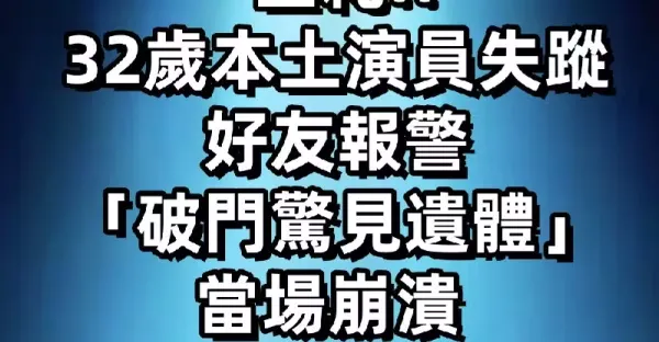 32歲本土演員失蹤!好友報警「破門驚見遺體」當場崩潰 #告別式時間曝光