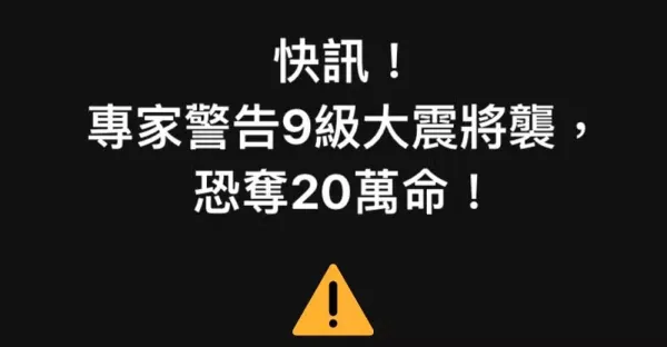 快訊!專家警告9級大震將襲, 恐奪20萬命!