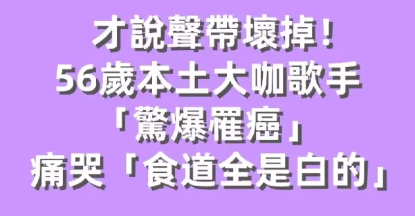 才說聲帶壞掉!56歲大咖歌手「驚爆罹癌」痛哭「食道全是白的」:妻兒怎麼辦