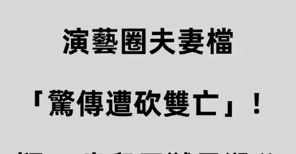 快訊/演藝圈夫妻檔「驚傳遭砍雙亡」!疑32歲兒子弒母殺父