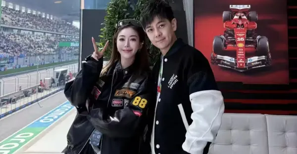 50歲林志穎在上海,去看賽車,老婆陳若儀露雙腿,在現場大出風頭