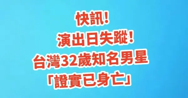 快訊/演出日失蹤!台灣32歲知名男星「證實已身亡」