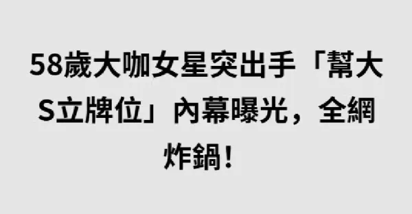 58歲大咖女星突出手「幫大S立牌位」內幕曝光,全網炸鍋!