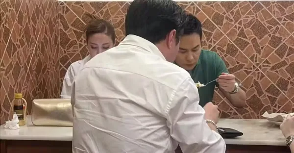 54歲鄭嘉穎出國度假,和老婆到餐廳吃飯,打扮帥氣,身上沒有老態