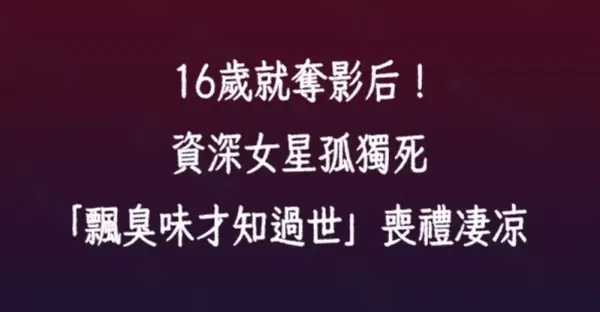 16歲就奪影后!資深女星孤獨死「飄臭味才知過世」喪禮淒涼