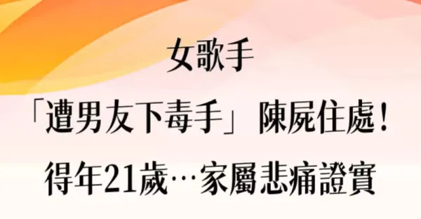快訊/女歌手「遭男友下毒手」陳屍住處!得年21歲…