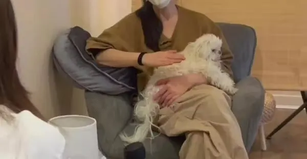 真的見到王祖賢了!素顏抱著小狗卷艾條,一次火龍炙1200塊