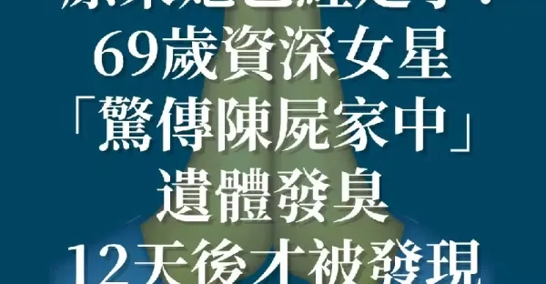 原來她已經走了!69歲資深女星「驚傳陳屍家中」遺體發臭....12天後才被發現