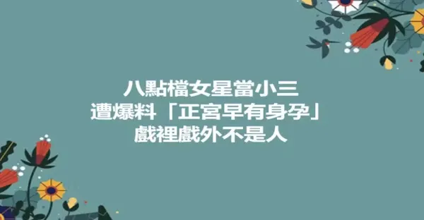 八點檔女星當小三!遭爆料「正宮早有身孕」戲裡戲外不是人