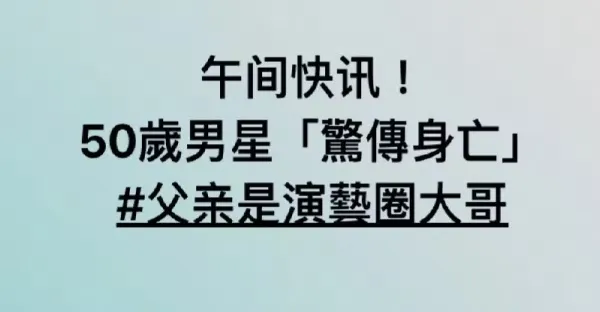 午間快訊!50歲資深男星「驚傳身亡」#父親是演藝圈大哥