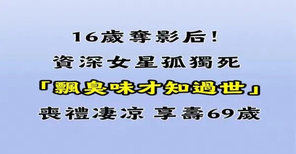 16歲奪影后!資深女星孤獨死「飄臭味才知過世」喪禮淒涼,享壽69歲