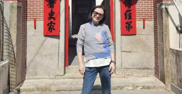 59歲曾華倩春節回鄉祭祖,素顏祭拜好虔誠,在家祠前留影一身休閒
