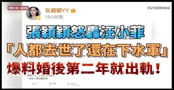 張穎穎不忍了!開噴汪小菲「人都去世了還下水軍」:結婚第2年就出軌