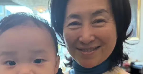 62歲何超瓊到長輩家拜年,素顏出鏡優雅大方,抱著干外孫一臉慈祥