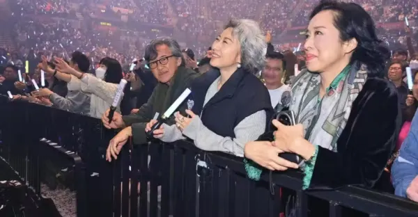 朱玲玲穿唐裝看演唱會,63歲葉蒨文在旁邊,頭髮花白狀態自然真實