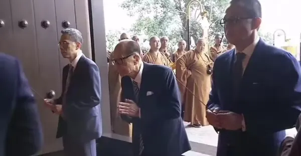 97歲李嘉誠現身慈山寺拜佛疑求長命百歲,佛堂下跪要人攙扶好心酸